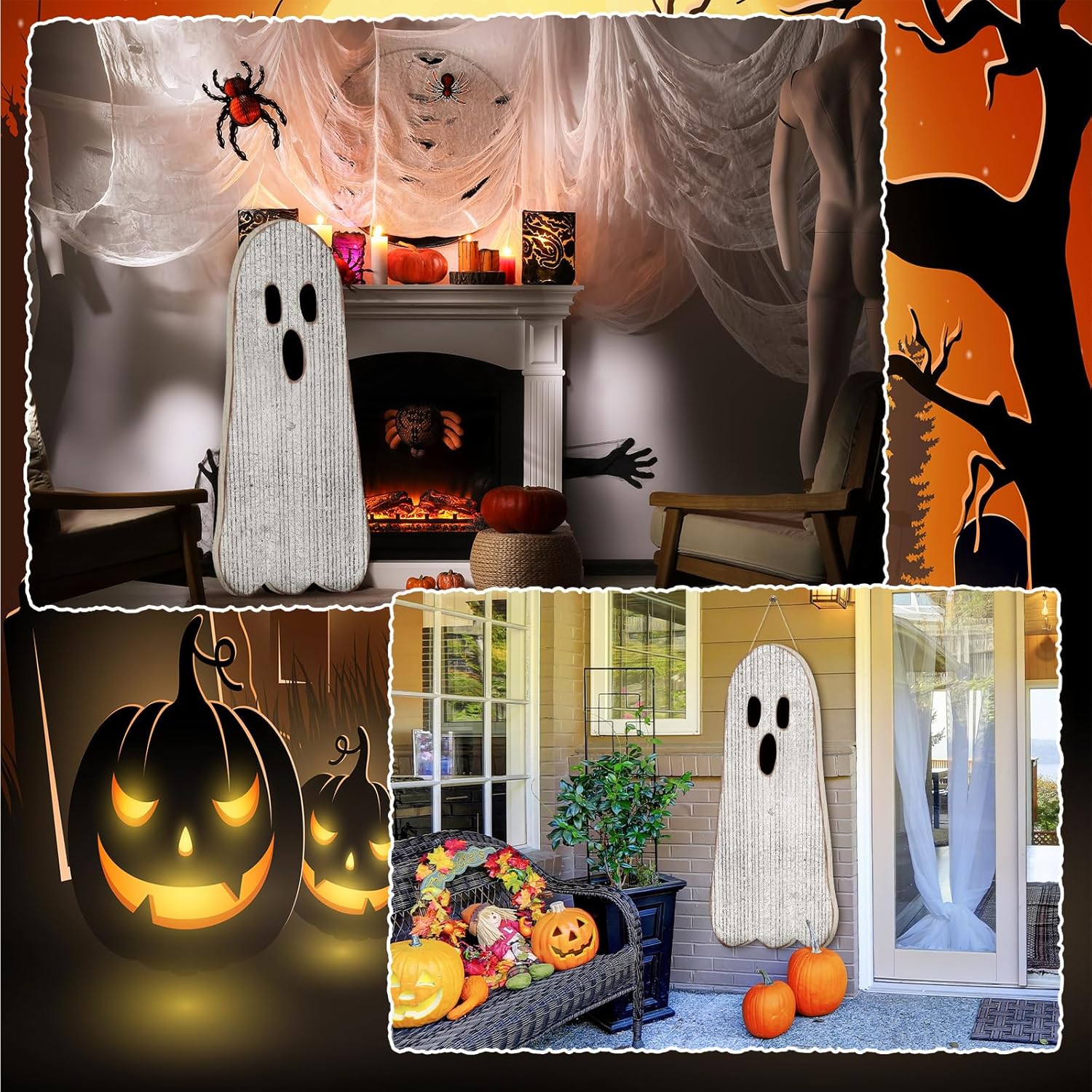 Features: Elegant and versatile white finish: The wood grain white color of this ghost porch sign adds a touch of elegance to your Halloween setup. Its neutral tone allows it to blend seamlessly with other decorations, whether eerie or whimsical. This Halloween standing sign offers versatility, enhancing any theme while maintaining a spooky yet sophisticated look. Suitable for most entrances: Designed with convenience and adaptability in mind, this Halloween Sign is ideal for your porch, front door, entryway, or perhaps tucked into a garden corner. Its versatile use ensures you'll find the place for it, no matter your space. Specifications: Material: wood Color: white Size: 42 inch Package includes: 1 x Halloween ghost welcome porch sign Notes: Manual measurement, please allow slight errors on size. The color may exist a slight difference due to different screen displays.
