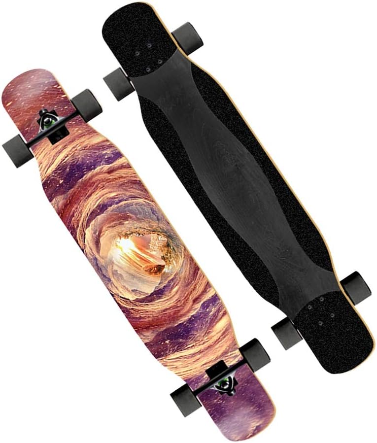 Highway skateboard, professional skateboard, adult double-warped short board, beginner children's four-wheel skateboard.Whether it is for beginners or skateboarders who want to enter the class, it is undoubtedly your best choice. The perfect design and exquisite workmanship are exciting, you can choose different styles, it is a symbol of young fashion,.To enjoy the fun of sports, this is undoubtedly the best gift.Suitable for the crowd: children, adults, beginners, advanced people, travel, street fashion, sports and fitness.❥ Specifications:Name: LongboardBoard surface: 7-layer maple wood boardBearing: Carbon steel bearingWheel: PU perfusion wheelProcess: Heat transfer flower processSuitable for: walking on the street/jumpingBearing capacity: static 150kg/330 pounds❥ The package includes:1×skateboard❥ ExplanationAbout the smell: Any new product will have some smell. Brand new materials, fabrics, plastics, etc, plus sealed in the box, there will be some smell in the box. About color difference: This product is taken in kind, but due to different lighting conditions, different displays and personal reasons, the actual object may have some color deviation from the photo, and the final color is subject to the actual object.About size: he product is measured by hand and there will be some errors. The actual size is subject to the actual produClick the "Add to Cart" button to order this skateboard now!