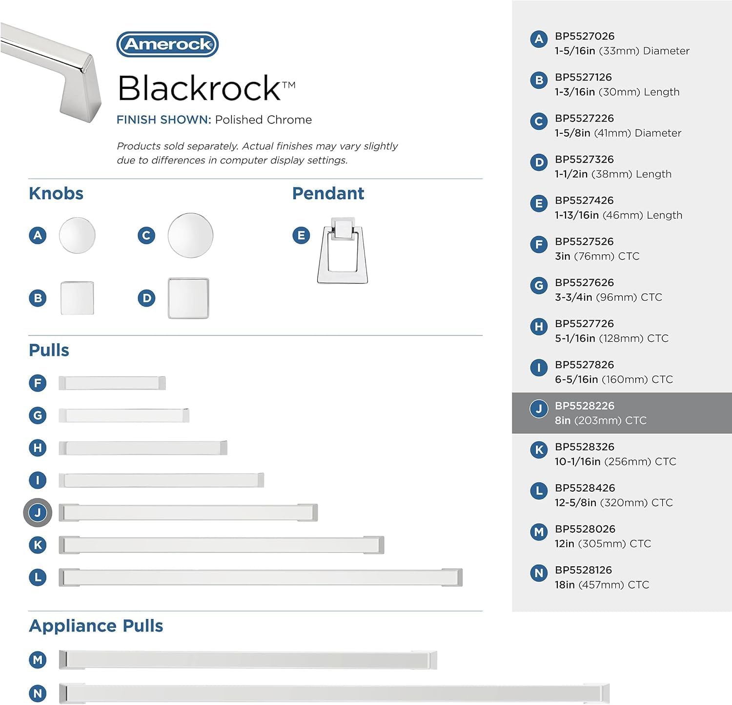 The Amerock BP5528226 Blackrock 8 in (203 mm) Center-to-Center Pull is finished in Polished Chrome. Inspired by hard geometric lines, Blackrock’s simple shapes make a lasting impression. With its shimmering mirrorlike nature, the slightly cool blue undertones of chrome enhance the surface of any product. Founded in 1928, Amerock’s award-winning home solutions including decorative and functional cabinet hardware, bath accessories, decorative hooks and wall plates have built the company’s reputation for chic design accessories that inspire homeowners to express their personal style. Amerock offers a variety of styles and finishes at affordable prices that add the perfect finishing touch to any room.