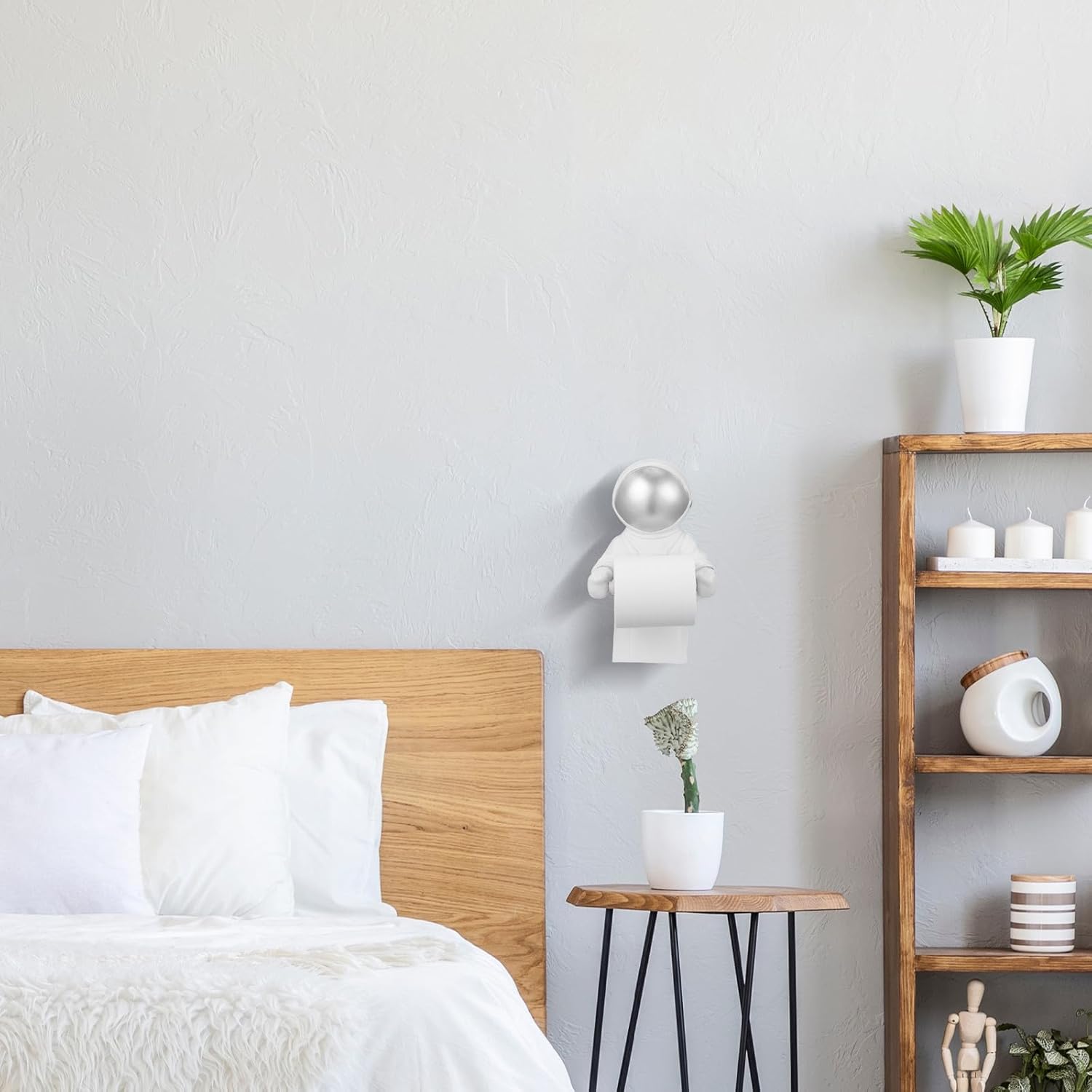 Package List 1 x Astronaut tissue holder Characteristics -Antitip base stability: this tissue holder for bathroom features a well balanced base to prevent tipping, allowing a secure and convenient user experience wall mounted tissue holder -Simple cleaning process: the smooth surface design makes cleaning quick and easy, keeping the tissue holder looking new with minimal effort paper towel hanger -Sturdy build: made from resin materials for lasting durability, reducing the need for frequent replacements -Material:Resin -Size:18.00X17.50X12.00cm/7.07X6.88X4.72in -Color:Silver -Multipurpose use: the bathroom toilet paper holder is perfect for organizing tissues in various areas, such as bathrooms, kitchens, or living rooms, adapting to your needs seamlessly kitchen paper towel holder -Playful astronaut design: transform your space with this astronaut tissue holder, combining functionality with a creative and entertaining design wall-mounted paper rack -Product Info: Astronaut Paper Towel HolderGoods Informationbathroom storage rack With its innovative astronaut design, this tissue holder meets the needs of users looking for practicality and style.Astronaut Shaped Rack Perfect for bathrooms, kitchens, or workspaces, it combines utility with a fun and imaginative aesthetic that delights users of all ages.tissue paper storage stand It keeps tissue rolls neatly stored and easily accessible, reducing clutter in your space