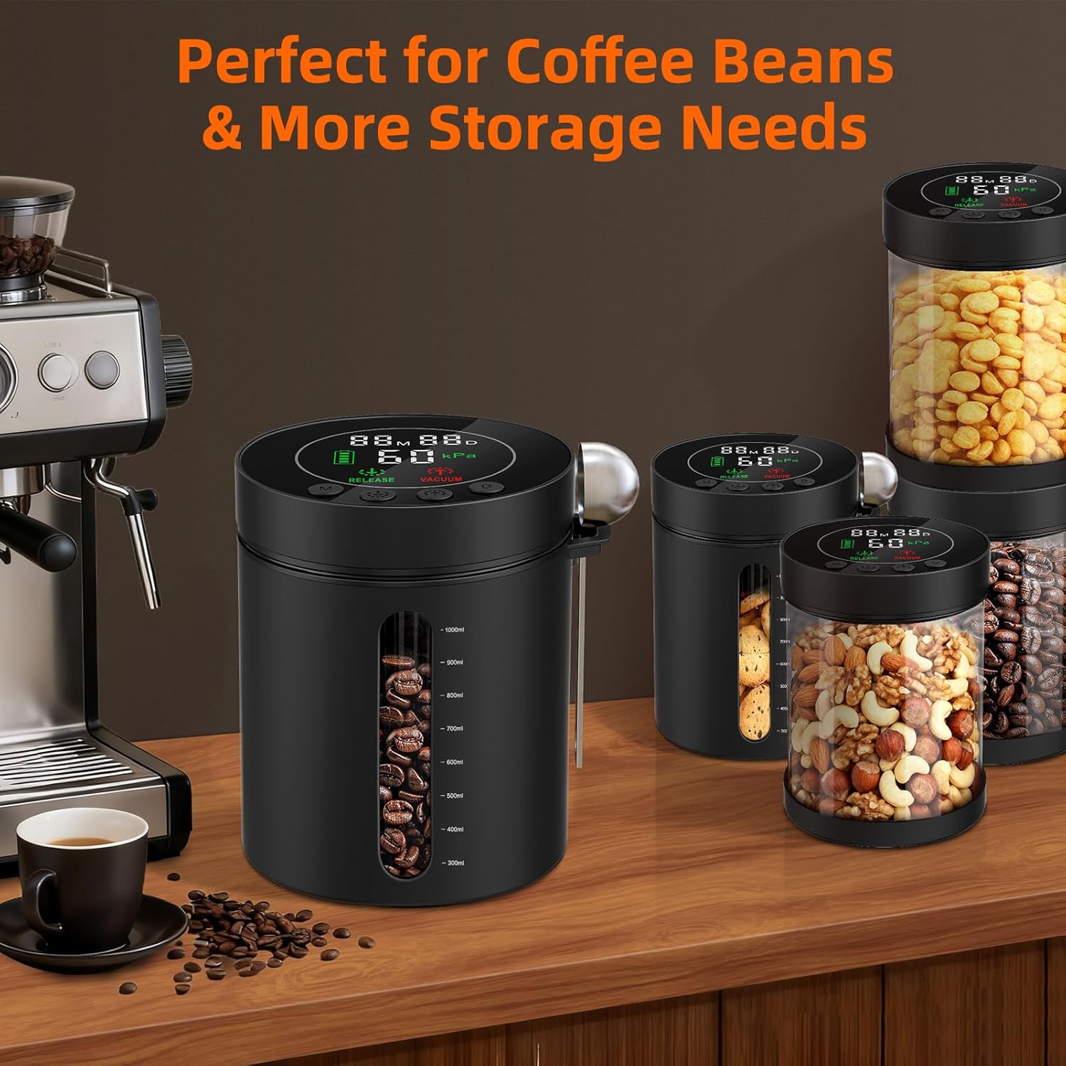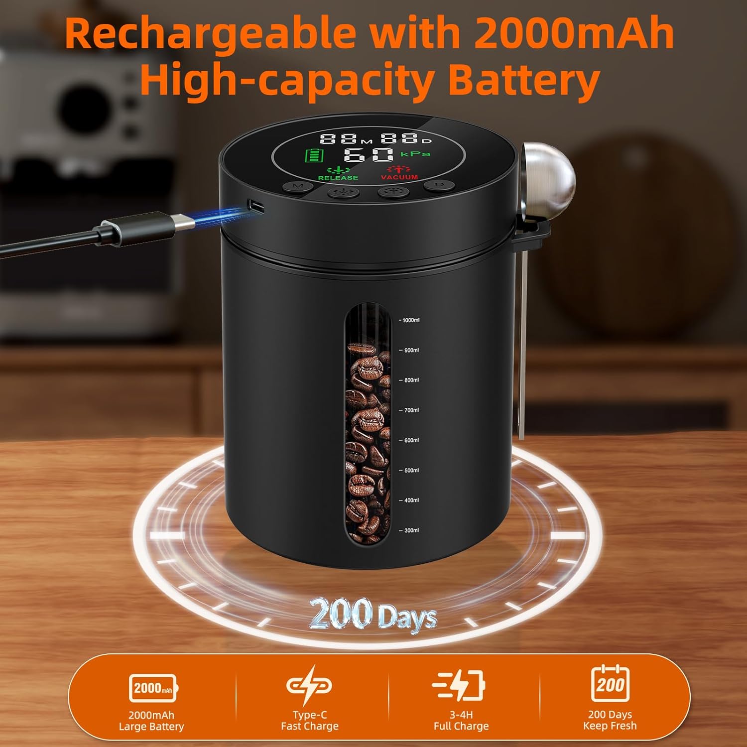 | Other Special Features of the Product | Air Tight Food Storage Container for Grounds Coffee, Beans, Tea, Flour, Cereal, Sugar Jars, Automatic Coffee Bean Container with LED Display & Window, Portable Rechargeable Electric Vacuum Coffee Storage Container, Sturdy Coffee Storage Container, โ Limited Time Special โ Airtight coffee canister with scoop, Date Tracker |