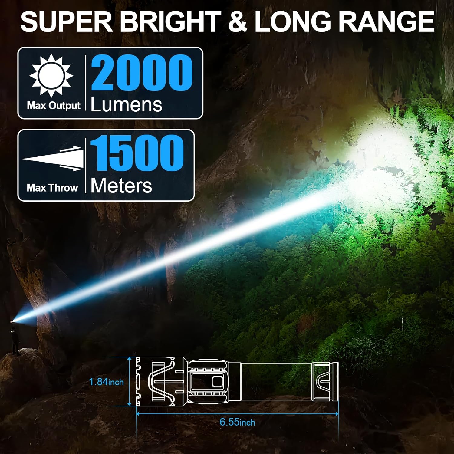 | Additional Features | High Power Long Range, TYPE-C Rechargeable, 5 Light Modes, Adjustable Focus, Adjustable Lanyard, Impact Resistant, IPX5 Waterproof, Non Slip Grip |