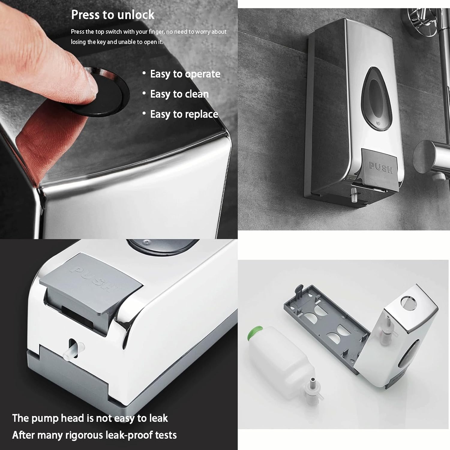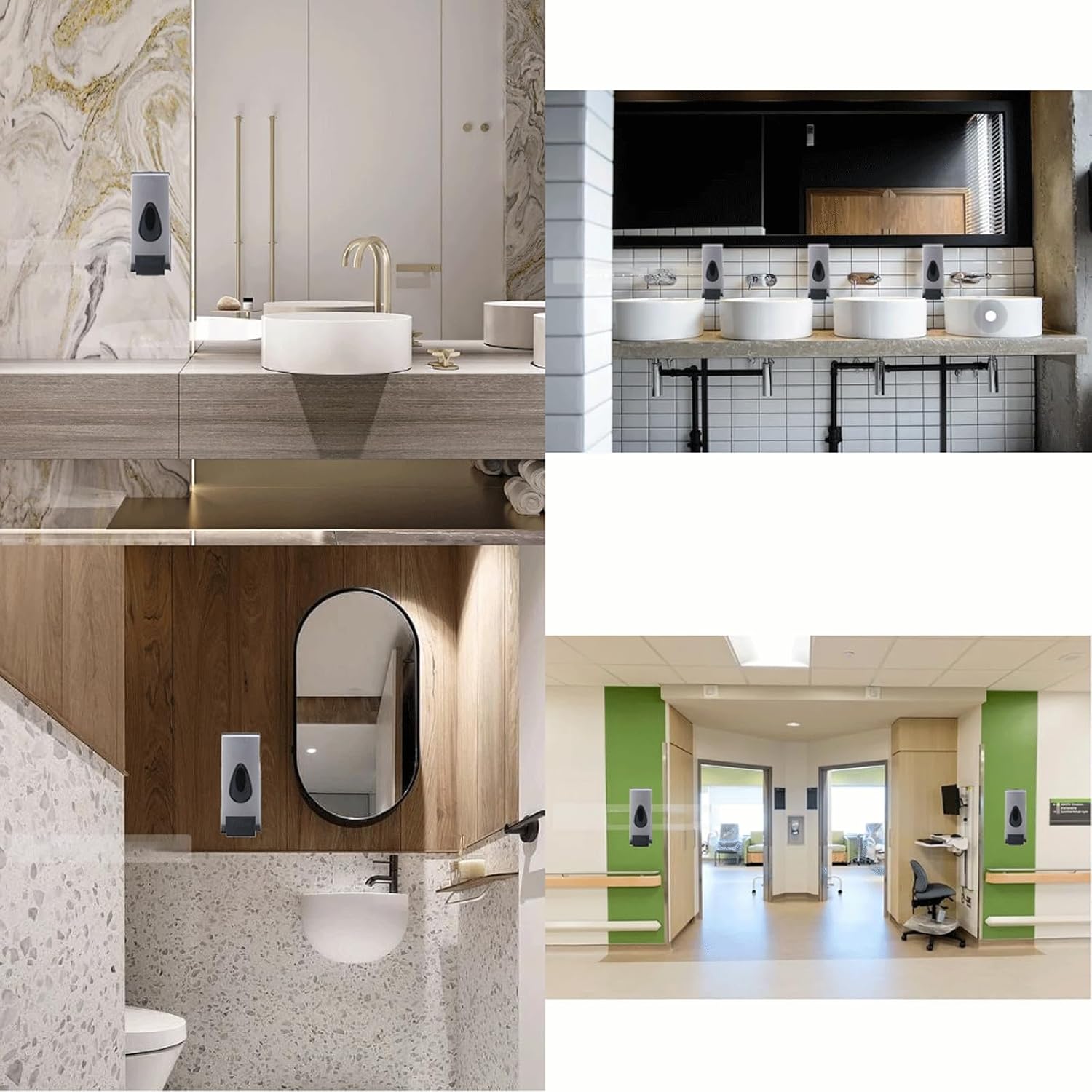 COMMERCIAL/HOME USAGE--Soap dispenser bathroom suitable for storage and cleaning in bathrooms, kitchens, schools, hospitals or hotels;the black soap dispenser looks high-end and better matches your bathroom decoration,replace messy bottles ,making your countertops immediately organized and improving bathroom space, making your life more convenient and interesting.Product name: Wall-mounted plastic soap dispenserLiquid discharge method: Manual pressingShell material: Plastic materialInstallation method: No need to drill holesColor: Silver grayProduct capacity: 500ML/17.6OZDimensions: 95x75x183mm/3.7"x2.9"x7.2"Scope of use: Bathroom/Toilet/Public places/Shopping malls/Hotels