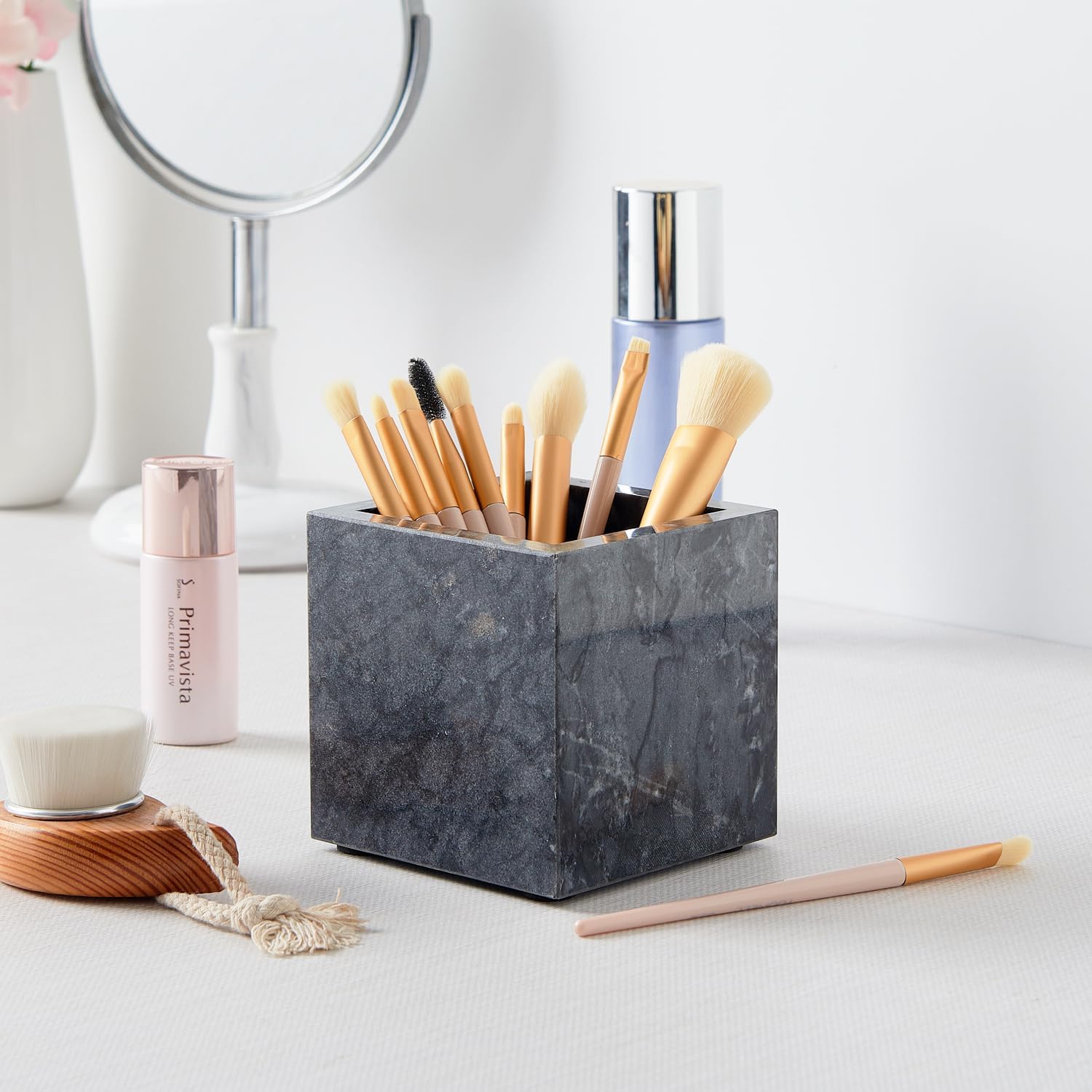 Elevate your bathroom with this sophisticated Marble Set. The tray provides a stylish landing spot for jewelry, perfume, or skincare essentials, while the matching toothbrush holder keeps oral care items neatly organized. Handcrafted from natural marble with elegant veining, this duo combines luxury and functionality. Water-resistant surface is easy to clean. Perfect for master baths, guest suites, or as a premium housewarming gift