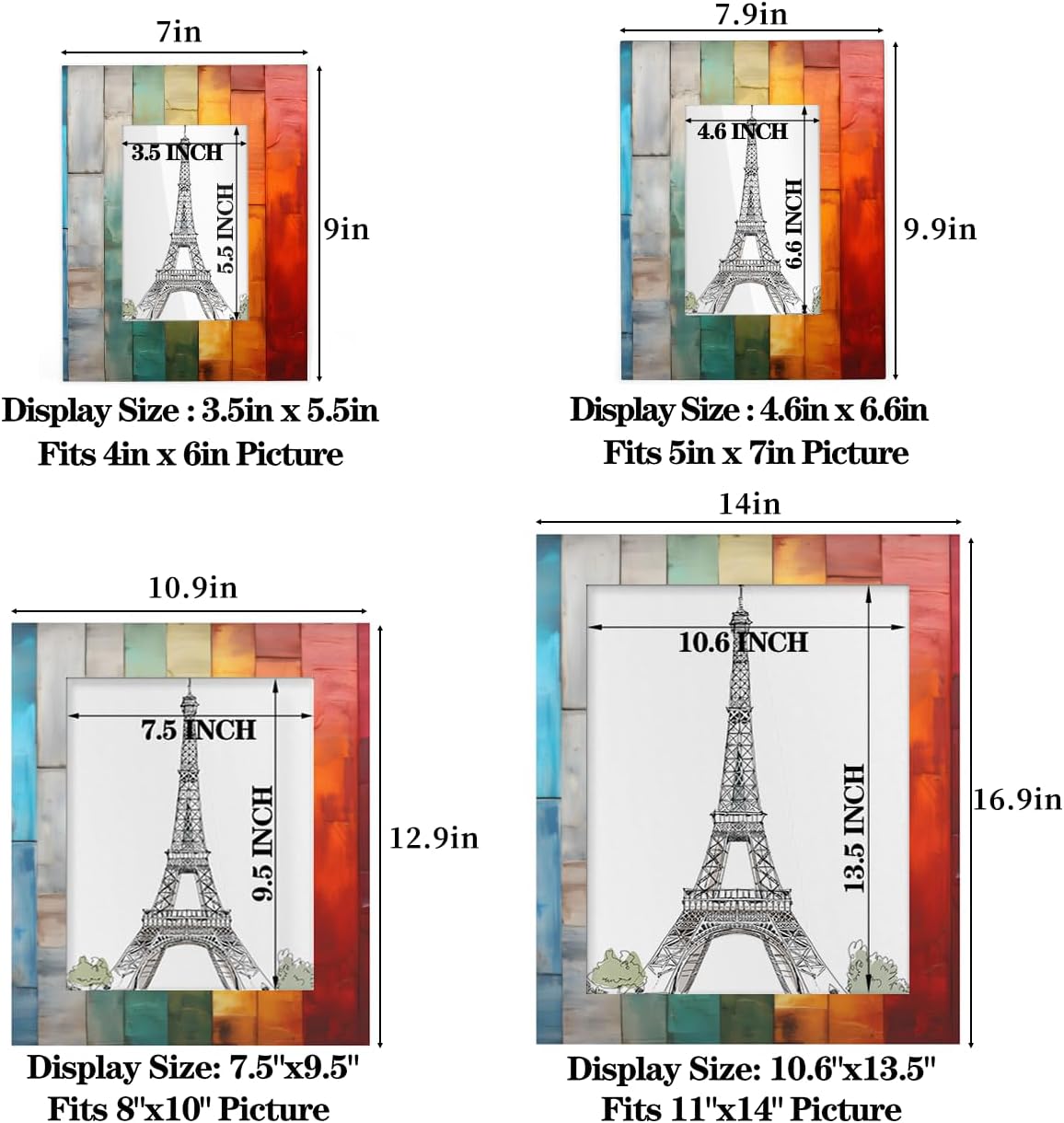 Display Your Memories11x14 inch photo frame is designed with a stand on the back, convenient for you to place it on a tabletop, desk, shelf, mantelpiece or at home or officeFrame MaterialThe picture frame is made of high quality wood.High-definition PVC panel. Safer. Use it after removing the film on both sidesThe design of this photo frame focuses on versatility. With two hooks and a stand on the back of the frame, you can place the frame horizontally or vertically, either on the desktop or on the wall. This dual function can meet all your display needs and enrich the beauty of your office decor and home bedroom and living roomGifts ChoiceThese photo frames are the perfect gifts for yourself or your family. Ideal for Wedding, Anniversary, Birthday, Baby shower, Thanksgiving, Christmas"