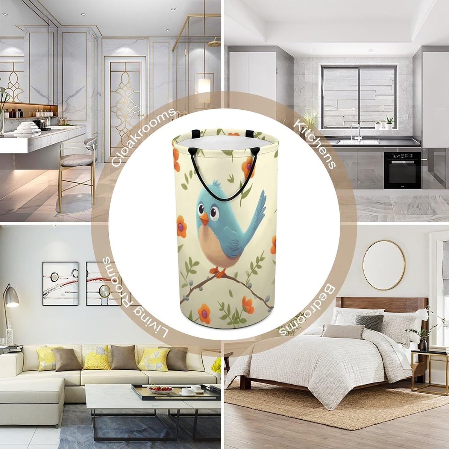 The pattern of the Cute Bird hamper is printed with exquisite patterns, which makes the product more attractive.Chic design allows it to be used in the living room to hold throw blanket, pillows, and reading materials, as well as in the bathroom for towels, or as a laundry hamper.The laundry hamper adopted collapsible design, equipped with handles. It is lightweight and portable for using, storing, and moving conveniently.Cute Bird Clothes hamper is suitable to store dirty clothes washing, place in the room to store toys, and other household goods, keep the house clean and tidy. Perfect laundry hamper for home, office, closet organizer, bedroom, bathroom, college dorm, etc.Gets out of your way when you need it to. This storage basket or laundry hamper is a good gift, which not only meets everyday storage needs but also carries deep care and love, a perfect way to turn thoughtfulness into warmth.