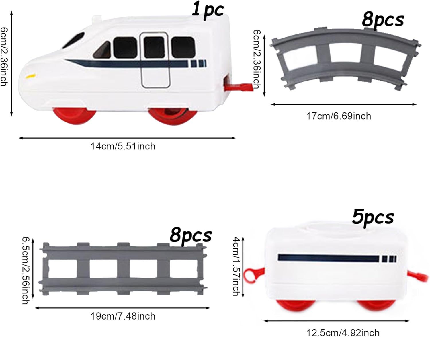 | Included Components | 1 * Locomotive, 5 * Carriage, 10 * Plate, 8 * Curved Rail, 8 * Straight Rail, 7 * Sushi, 1 Pair * Chopsticks |