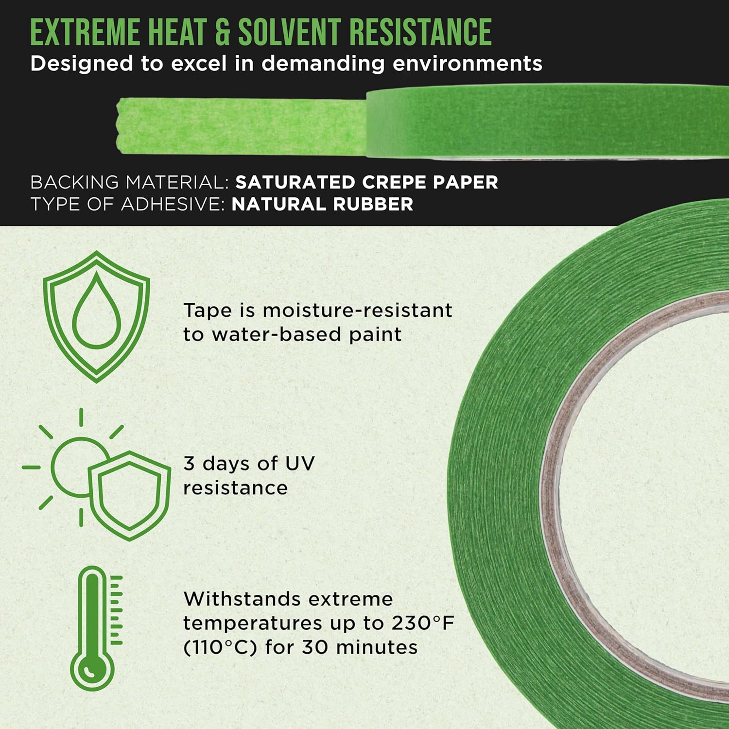 | Material Type | Crepe Paper Backing, Natural Rubber Adhesive |