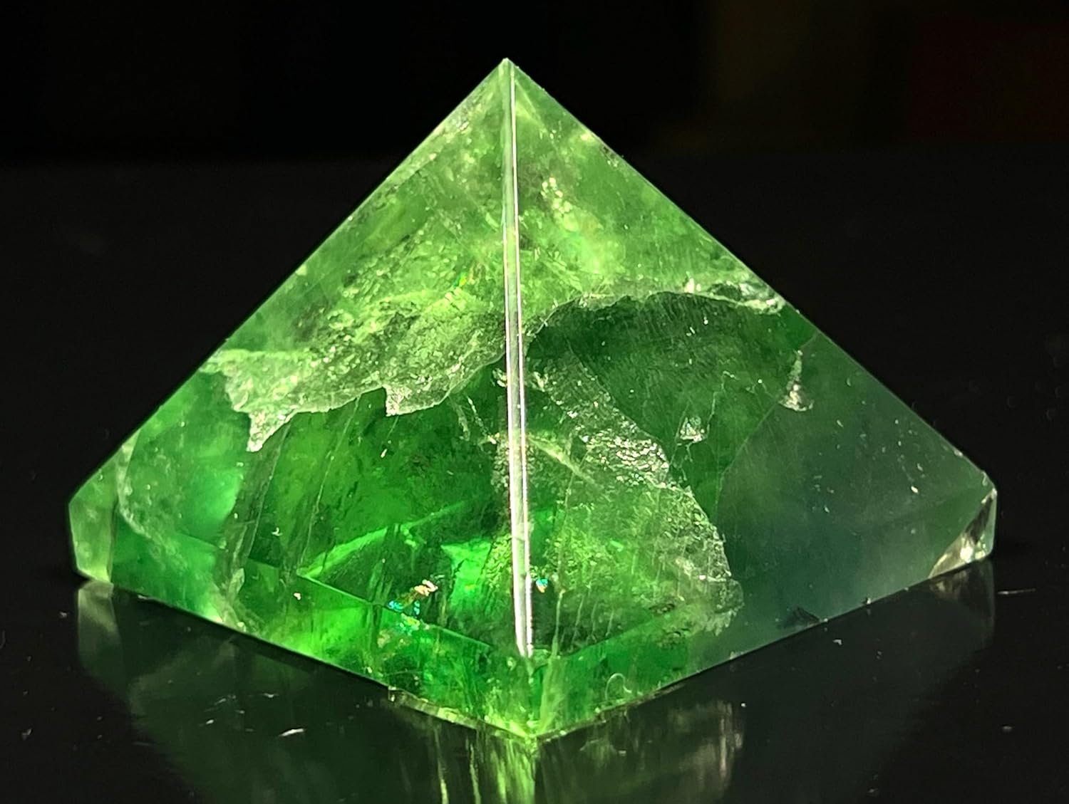 Embrace Clarity & Communication. Discover the calming energy of this handcrafted Green Fluorite pyramid. Standing at approximately 2 inches, this piece is a perfect addition to your space, offering a serene and focused atmosphere. #GreenFluoritePyramid #ThroatChakra #GeminiJewelry #HomeDecor #CrystalDecor #GiftForHer #GiftForHim