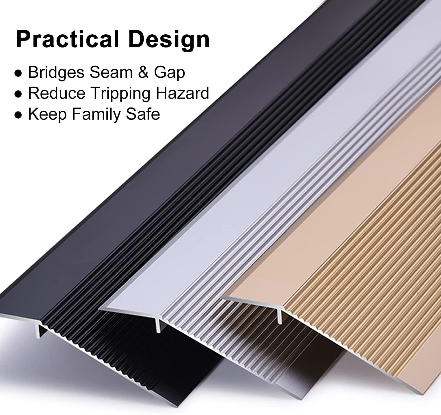 Carpet floor transition strip offer the perfect materials and quality for you and your family. Our thresholds transition strips can bring convenience for you and your family, at the same time, it can flexibly adapt to the different decoration styles, perfectly into any space!Specification :- Name : Floor Transition Strips- Material : Aluminum Alloy- Suitable Floor Thickness : 1cm-4cm (0.3in-1.5in)- Can Be Customized : Yes- Be Applicable : Smooth Surface (tiles, plastic, marble, metal, glass, hardwood, smooth wall)Feature : - Strong Aluminum Construction - Waterproof Surface- Quick & Easy InstallationEasy To Clean And Maintain- Protects Tile Or Flooring Edges- Prevent Family Trips Over Or FallsPackage Includes :1 x Carpet Floor Transition Strip(Note : Glue and screws/nails are not included.)Please Note :- There may be slightly deviation in dimensions due to manual measurement. Thank you for your understanding.- There may be chromatic aberration due to the difference between the recording lamp and the display. Please refer to the actual product.