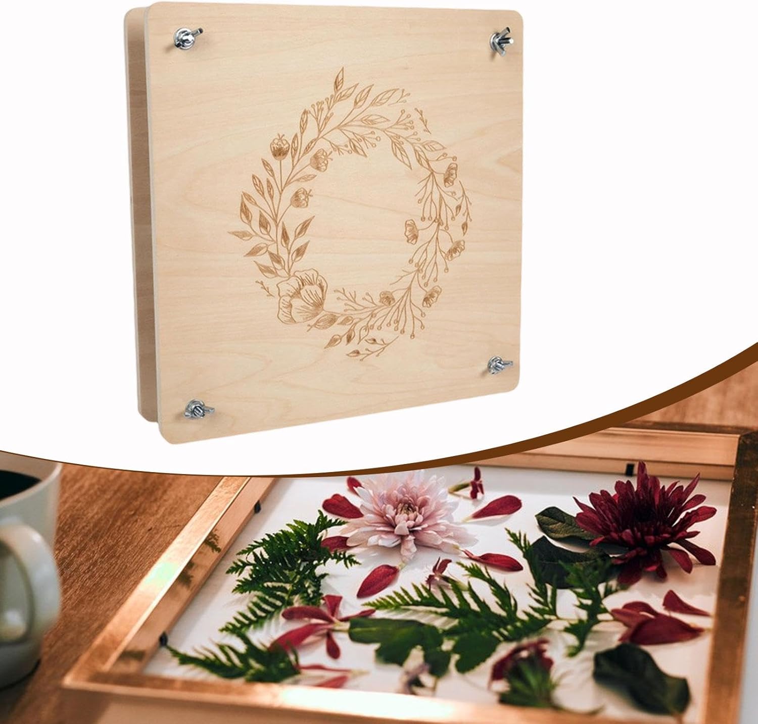Product description Description:【Premium Wooden Construction】: Crafted From Quality, Sturdy Wood, This Flower Press Kit Is Built To Last, Ensuring Durability But Also Adding A Touch Of Rustic Elegance To Your Crafting Tools【Flower Plant Preservation Kit】: Our Flower Pressing Kit Is Expertly Designed To Apply Even Pressure, Effectively Drying Flowers And Leaves While Preserving Their Intricate Details【Portable & Reusable Design】: This Quickly Flower Pressing Drying Set Is Designed For Repeated Use, Which Can Be Easily Cleaned And Reassembled, Offering A Sustainable To Enjoy The Art Of Flower Pressing【Unleash Your Creative Potential】: The Plant Pressing Kit Is Great For A Wide Range Of Diy Projects, Like Personalized Greeting Cards, Unique Resin Jewelry, Custom Phone Cases, Scrapbook Pages, Or Elegant Home Decors, Etc【The Ideal Gift For Craft Lovers】: Elegantly Designed And Easy To Use, This Flower Presser Kit Is A Thoughtful And Inspiring Gift For Any Diy Enthusiast, Nature Lover, Or Aspiring Artist. With Size 18 Cmx18 Cm/7.09 Inchx7.09 InchSpecification:Material: WoodSize Chart:18 Cmx18 Cm/7.09 Inchx7.09 InchPackage Includes:1 Flower Press Kit Manufacturer Contact Information Customer Care : [ Email : kosliyastudio@gmail.com, Contact No: +91-9355748177]