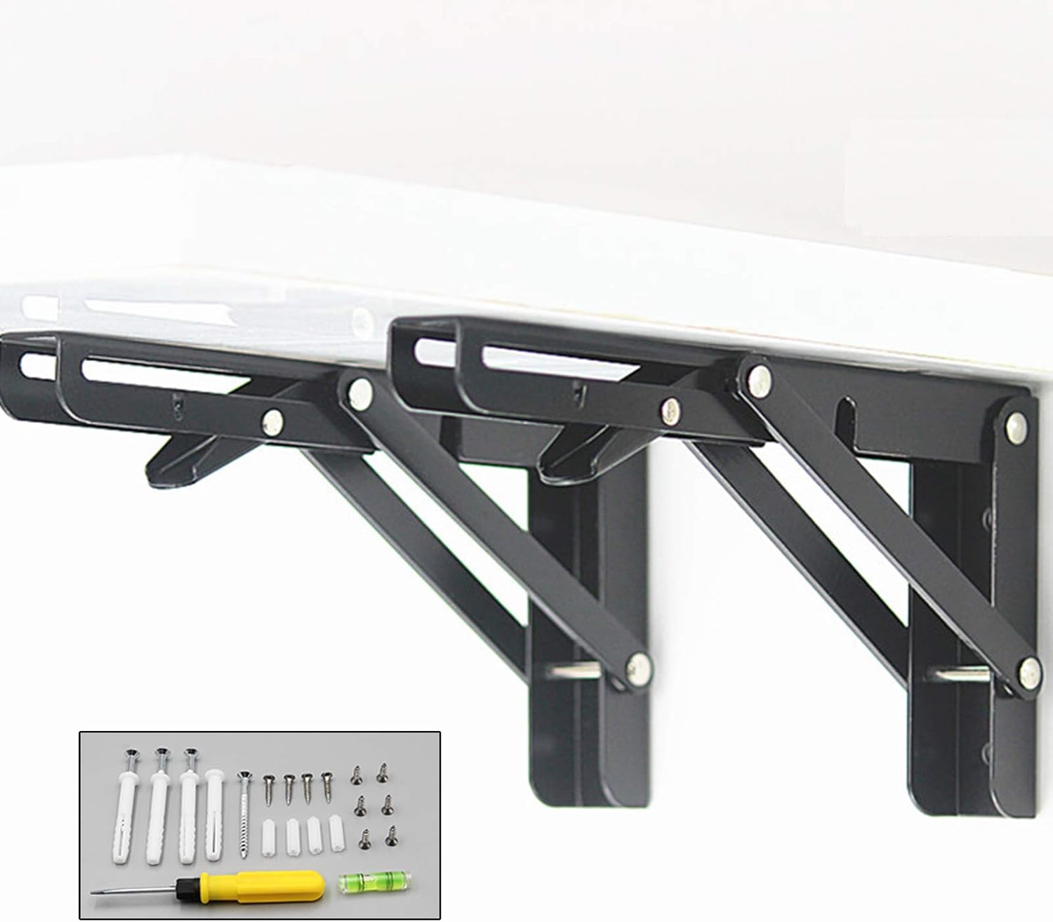 product description:Wall-mounted shelf bracket, you only need to prepare a wooden board, you can build a personal workbench in a few minutes, foldable design, you can fold it up when not in use, saving space;Multi-functional shelf bracket, various specifications, 3 colors, 2 processes, whether it is made of brushed stainless steel or cold-rolled steel, the bearing capacity is very strong, and it is the best choice for home improvement brackets;Product parameters:Name: Folding bracketMaterial: stainless steel/cold rolled steelDimensions: 7.9in,9.8in,11.8in,13.8in,15.7in,17.7in,19.7inColor: white, black, brushed stainless steel colorProduct use: household wall storagePackage Included:2 shelf brackets, accessories (expansion tube, screws)Features:Foldable bracket, not occupying space;Stainless steel/cold rolled steel material, strong and durable;Spring button, convenient and quick;Thickened support rod, stable without shaking or breaking;Thicken the bottom plate for firmer installation;Various specifications can be selected according to requirements;Complete accessories and easy installation;After-sales service:We are committed to providing you with the best quality shelf brackets. If you have any questions about the product, you can contact us at any time and we will solve it for you in time