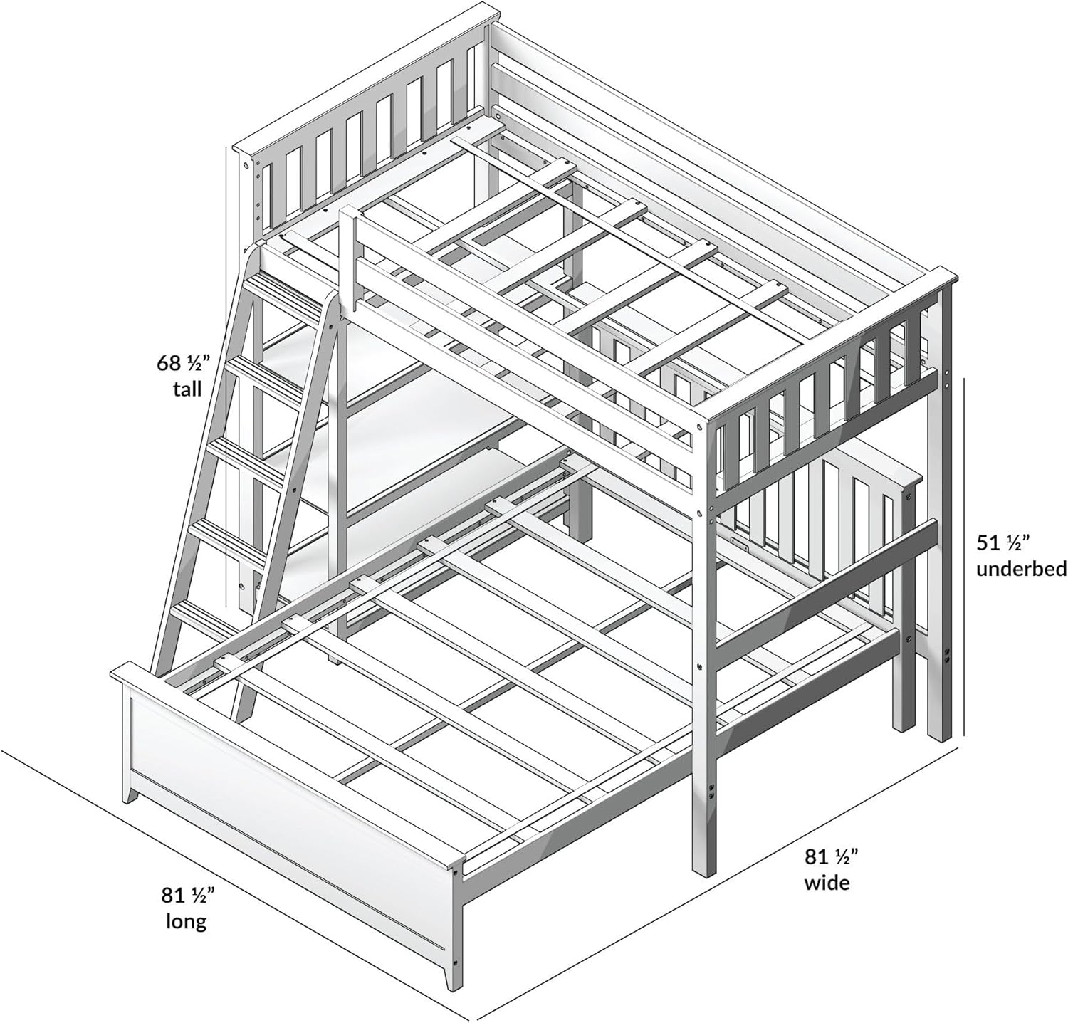 Plenty of room for sleep, study and play? Now that’s a win-win! The Max & Lily Twin Over Full L-Shape Bunk Bed with Bookcase is the perfect combination of functional and fun that both kids and parents love. Top bunk features tall 14” guardrails for extra sleep security up high. For best fit and safety, we recommend using a 5-inch mattress, and not exceeding an 8-inch mattress. Lower bed is not attached to the top bed and can be moved independently. Practical storage shelves give you the space to organize all your toys, books and school essentials. Angled ladder with wide anti-slip steps offers comfortable, easy climbing. Added bonus - ladder and shelves are both reversible upon assembly, so they fit great in any space. All Max & Lily products use a durable, low VOC finish. The slatted head and footboards and flush, color-matched hardware give this bunk bed a clean, modern look. Instructions, upper/lower slat rolls, and required hardware are included. Constructed with solid, knot-free New Zealand pine wood for long-lasting strength and sturdiness. With solid plywood slats and a metal support bar, each sleeping surface can support 400 pounds of resting weight. This bed meets or exceeds Federal safety standards for kids furniture. When it’s time for play, this bunk bed’s space saving design frees up plenty of floor space by stacking two sleeping surfaces. Add a desk (purchase separately) to turn your bed into the ultimate homework and craft zone. 2+ adults make assembly simple and easy. The Twin Over Full L-Shape Bunk Bed with Bookcase from Max & Lily offers exceptional quality and affordability that kids and their parents will enjoy for years to come. Max & Lily is a member of the Maxwood family of brands - the kids furniture experts bringing a tradition of superior quality, safety and fun!