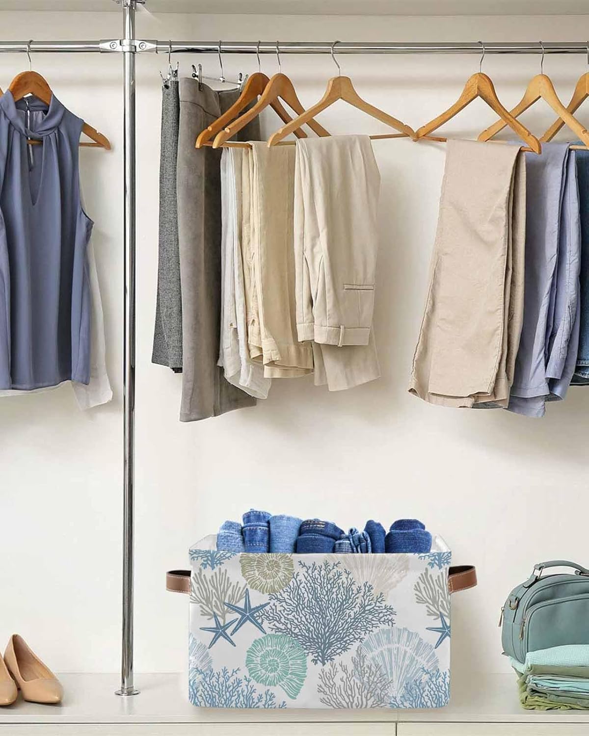 Storage Basket for Indoor Outdoor Use 【Product Description】 Package: 1 PC Product Dimensions: 15(L)×11(W)×9.5(H)inches This storage bin can be used as an organizer at nursery room, bedroom, bathroom, office closet and everywhere you would like to storage towels, blankets, clothes, toys, books, magazines, files, documents, gifts, etc. You can put these storage baskets on the closet shelves very easily and keep your room tidy and nice.. 【High Quality Material】 Made of waterproof liner inside and high-grade polyester fiber storage basket which are soft, lightweight, durable and portable. Sturdy steel rod frame on the top adds stability, and leather handles make it comfortable to carry. Nice cutting, edges are hemmed and sewn without extra thread exposed. We highly take care of every detail. 【Multiple Pattern Design】 Our storage cubes available in multiple colors match all kinds of decorations for your room and furniture. Combine practicality and beauty, making it a great organizer option for any room’s centerpiece. Our storage bins are durable, reusable, and exquisite. Great choice as a gift for family members or friends. 【Reminder】 Special Note: Please do not wash the bag in the washing machine, it will damage the coating and metal frame support inside.