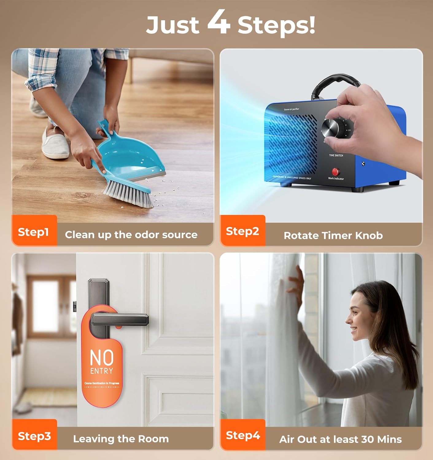 Hadlook Ozone Generator, 48,000mg/h High Capacity O3 Machine for Large Spaces Up to 4,000 Sq Ft, Portable Odor Eliminator for Car, Home, Basement, Smoke, Pets, and Commercial Use, Blue