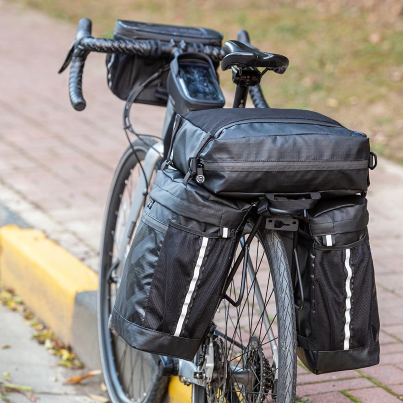 Package List 1 x Bicycles Rear Shelf Bag Features - Color: Black. - Capacity: 50L Bicycles Rear Carry Bags. -Product Info:Waterproof travel bag - Size: About 33.00X33.00X14.00cm/ 12.97X12.97X5.50inch. - Material: EVA. - The product designed for convenience for short trips and long-distance journeys Rear Seat Shelf Bag. - A great gift for your friends and families who are cycling lover, they will love this practical bike bag Bike 3-in- Carry Bag. - The design helps to store items and provides ample storage space for items you need for cycling Bicycles Rear Saddle Bag. - It comes with the simple structure, provides convenience to install and remove Bike Saddle Bag. - Designed with reflective, can be easily seen in the dark, safe for your riding at the night Mountain Bike Carry Bag.Goods InformationBike Pannier can be removed from the bike and install easily.Mountain Bike Carry Bag This is a great bag and doesn't get in the way when you're riding.Bike 3-in- Carry Bag The bag has the proper amount of compartments to keep everything organized.Bicycles Rear Saddle Bag This bike rear seat bag is designed for moderately long rides