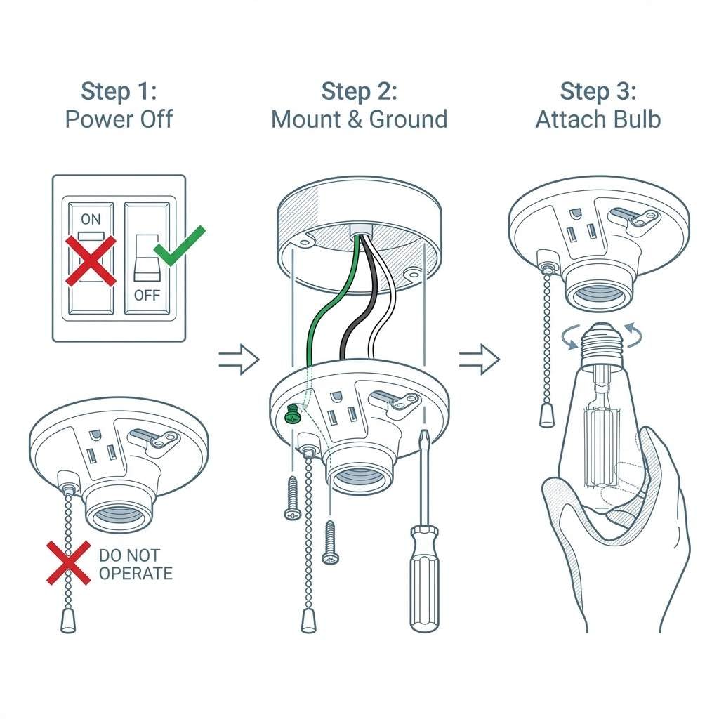 • EASY INSTALL SETUP: Supports standard E26/E27 bulbs up to 660W, 125V AC; includes mounting screws.