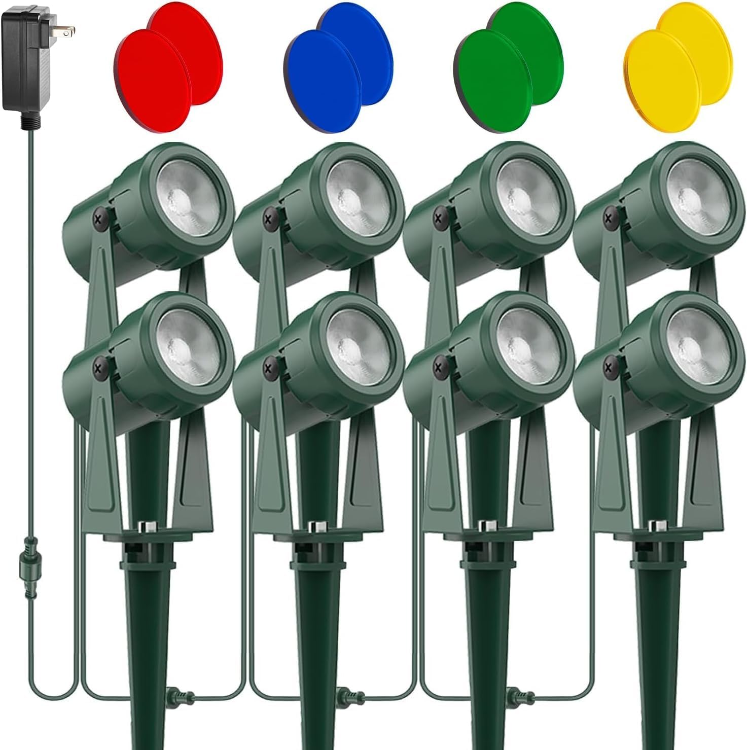 | Included Components | 8* Aluminum lamp holder, 8* Plastic ground plug, 1* Non-waterproof power supply, cables (No dusk to dawn controller) |