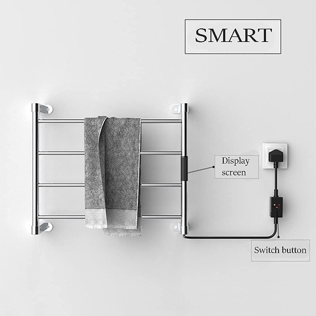 GREAT FOR SMALL SPACES: This space-saving drying rack provides space to air dry clothing, towels, delicates, lingerie, sports bras, yoga pants, athletic gear and more without taking up any floor space; Easily mounts on a flat wall surface with the included hardware; Use in laundry rooms, utility rooms, kitchens, bathrooms, garages or on balconies; A great laundry drying system for small-space living in college dorm rooms, apartments, condos, RVs and campersDeciding to put a heated towel rail in the bathroom is one of the most common home improvements to make. Having the ability to hang up your towels and get them dry before they need to be used again is a simple, but important luxury.We've all had that horrible experience of using a still-damp towel on a cold winter's morning. Installing a heated towel rail gets rid of that problem once and for all.SPECIFICATION- Product Type: Electric Towel Rack- Frame Material: Stainless Steel- Voltage: 110V-220V- Power: 65W- Installation method: Wall-mounted- Product Size: 448*540*86.5 mm- Package Size: 60*50*10 cm- Adjustable temperature: 100℉,120℉,135℉- Temperature reaches : 140℉- Wall Mounted: make the most of available room space- Easy to clean and easy to install