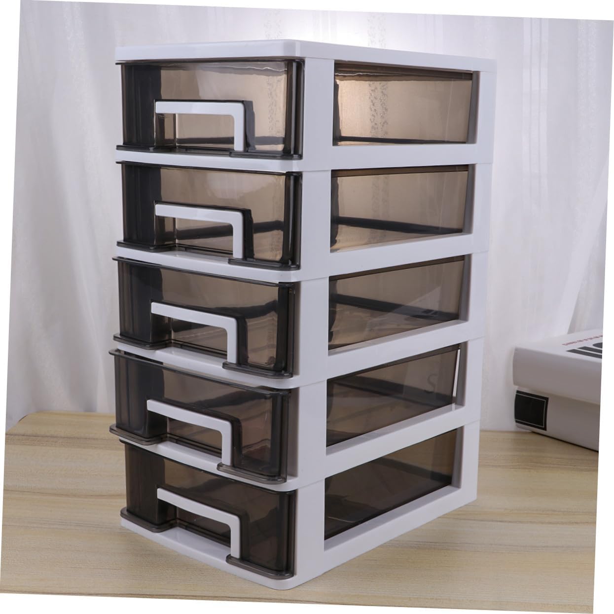 Package List 1 x Storage Cabinet Features - Material: PP storage cabinet plastic. -Product Info:Desktop storage box - Size: 31.30X21.30X15.20cm/12.30X8.37X5.97in storage organizer with drawers - Help keep your things neat and orderly, quickly and efficiently find what you need storage drawer cabinet plastic. - Lightweight and portable box is suitable for placing on office, study room, living room, etc drawer storage cabinet plastic. - plastic chest of drawers - Half transparent black design for easy recongize and blocking out sunshine plastic storage cabinets. - Multi-deck drawer design, enough space, desktop items to be placed in categories, convenient for sorting and storage, plastic drawer for clothes. - Create maximum storage in small spaces plastic storage drawer. - Simple fashion shape make it suitable for office and study room's decoration plastic cabinets for storage.Goods Descriptionplastic drawer storage Simple but stylish, dress up your room and home.plastic drawer cabinet You can classify to put things, practical and convenient.storage cabinet plastic It can be used for storing small sundries and keep your room clean and neat.plastic drawer storage clothes This item is made of for and use