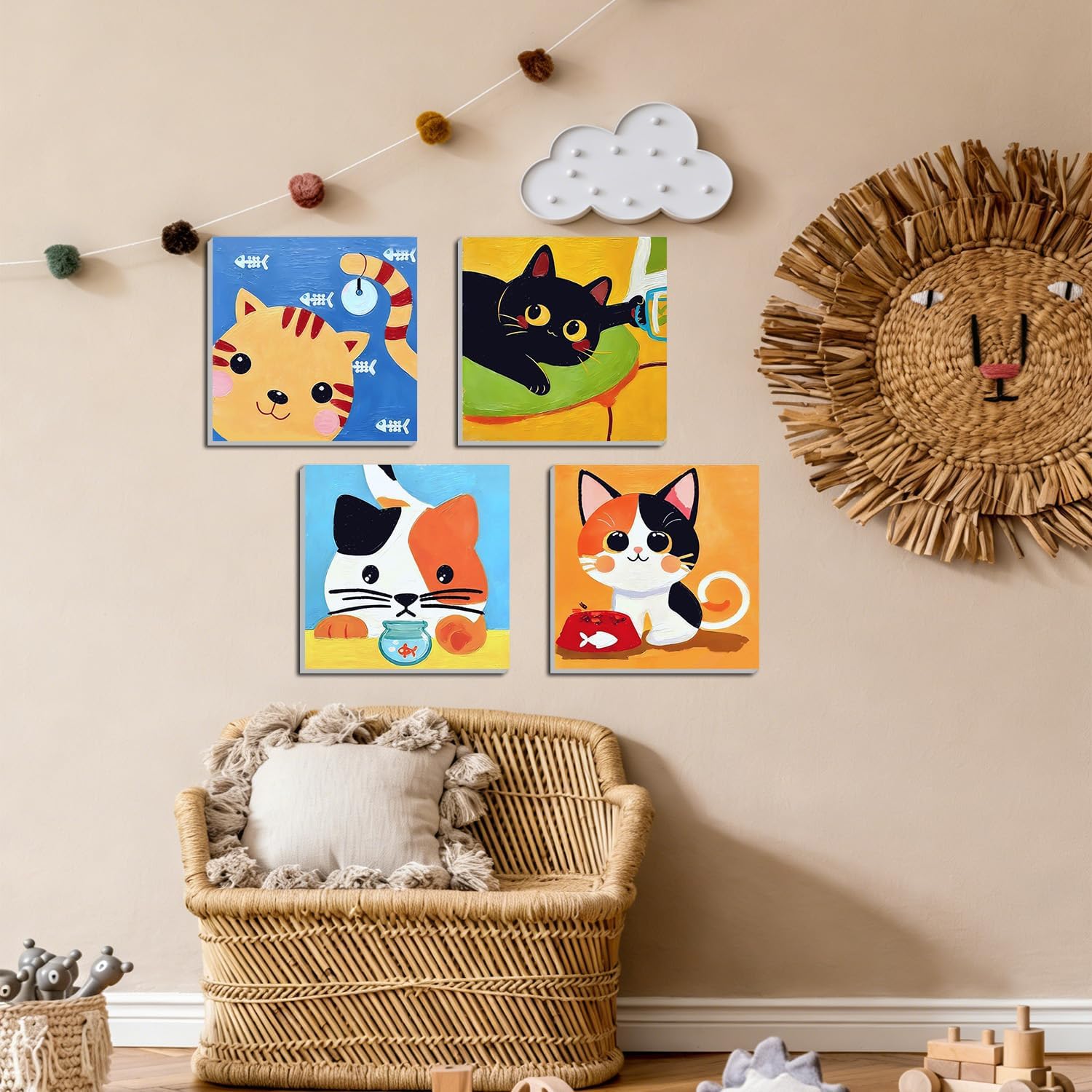 WEMEON 4 Pack Paint by Numbers Kit for Kids with Framed and Easel, Easy Kids Paint by Number Kits Age 8-12, DIY Cat Paint by Number for Teens for Home Wall Decor Gift 8x8 inch