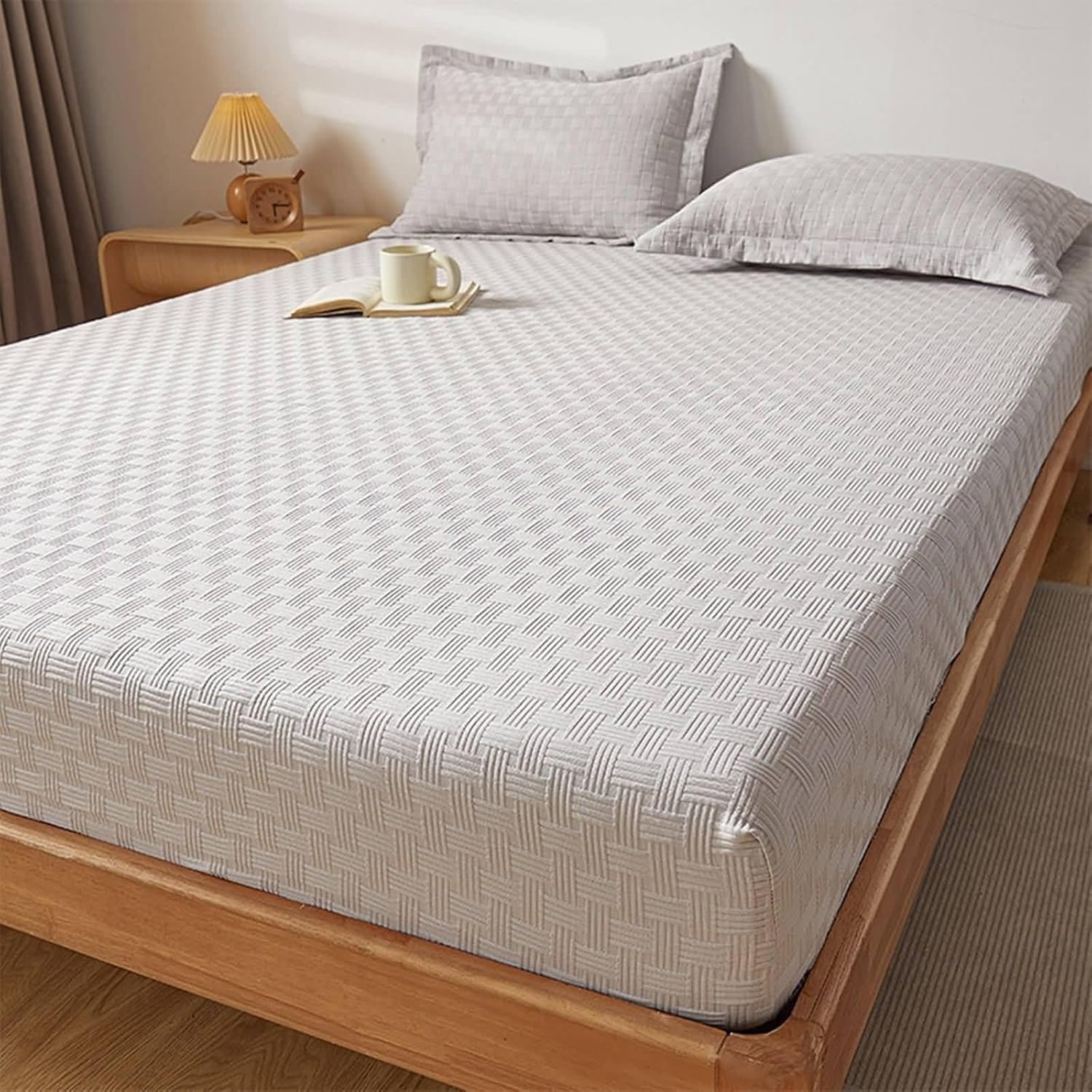 1.PACKAGE: Bed Sheet x 1 and Pillowcase x 1FABRIC: PolycottonOur fitted sheet with pockets to easily fit 10-25cm mattresses, so it’s a cinch to put on the bed – even with a mattress topper! Also, our fitted sheets feature elastic all the way around its edges to hug your mattress securely!Our bed sheets are soft, breathability and lasting quality.Our bed sheets are conveniently machine washable. However, to keep wrinkles at bay, promptly remove the sheets from the dryer or iron them.