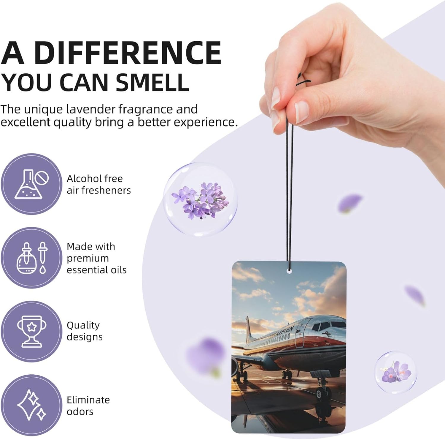 unobstructed vision: this Airplane rearview mirror scented fresheners doesn't obstruct your vision while driving, ensuring a safe and comfortable journey every time.easy hang: we've included a convenient rope for hanging, making it super easy to attach this christmas air freshener wherever you prefer. No fuss, no mess - just hang and enjoy the fragrance.incredible package deal: this rearview mirror pendant aromatherapy tablets package includes 6 pieces in 6 captivating designs and 1 refreshing scents (lavender). Experience a variety of delightful fragrances that will keep your surroundings smelling wonderful throughout the day.environmental protection: the car air fresheners for women smell can last for about 1-2 weeks. When the smell fades, you can add your favorite perfume. Continue to use, reusable6 pcs included: you will receive 5 individual shoe cabinet fresheners, each in its own package; enjoy consistent scents for nearly a year, or share them with your friends or families
