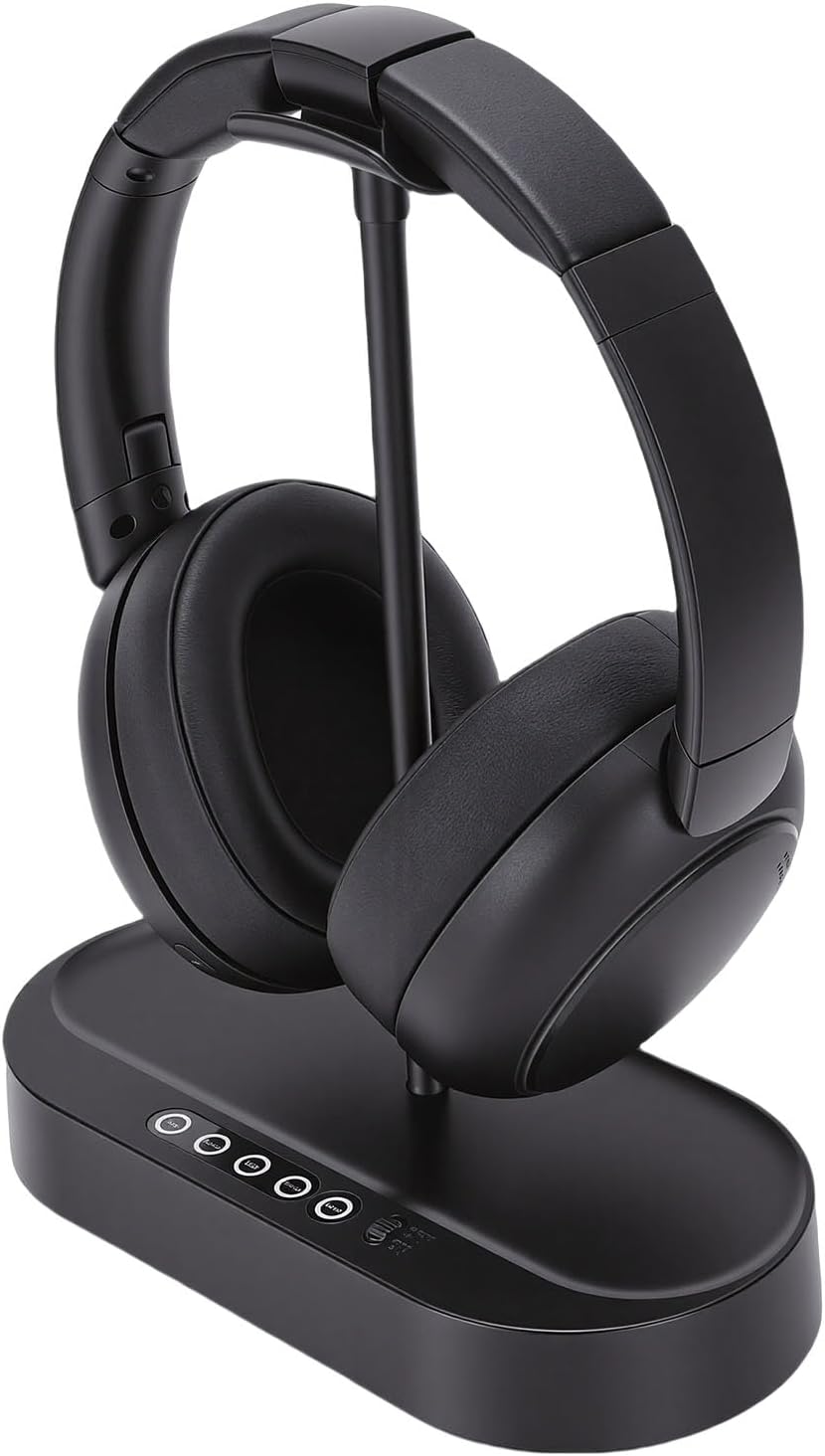 Spec: Item Type: Wireless TV Headphone Material: ABS Earphone Battery: LiPo Battery, 800mAh (Built in) Wireless Transmission: 2.4G Wireless, Bluetooth 5.4 Wired Connection: Optical, 3.5mm AUX Transmission Distance: ≥30m Protocol Support: V5.4, V5.3, V5.2, V5.0, V4.2, V4.2 LE, V4.0, V3.0, V2.1 and EDR Speaker Impedance: 32Ω Frequency Response: 20 to 20kHz Speaker Sensitivity: 115dB 2 in 1 Connection: Support Connecting Two Headphones Support for OS Battery Display: Support Battery Life: 40h Package List: 1 x TV Headphone 1 x Base 1 x 3.5mm Cable 1 x Cable 1 x Optical Cable 1 x USB Power Cable 1 x User Manual How To Use: Connect the base to the power source and sound signal.