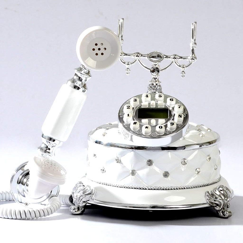 The simple and elegant desn of the wired telephone makes it the perfect decoration for bedrooms, living rooms and offices. Product Name: European retro Telephone Size: 23cm long 23cm hh Handle length: 25 cm Material: Resin Color Category: White Location: seat type Telephone category: wired telephone Appearance: Antique / Craft / Antique Telephone Decorative style: European, retro, antiques Applicable space: bedroom, living room, study, office