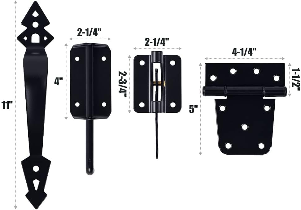 Heavy Duty Gate Latch Hinge and Pull Kit( 3.5 in Gate T Hinges + Gate Latch +11-1/8 in Ornamental Gate Handle) and 3-1/2 inch Heavy Duty T Hinge Gate Hinges 6-Pack