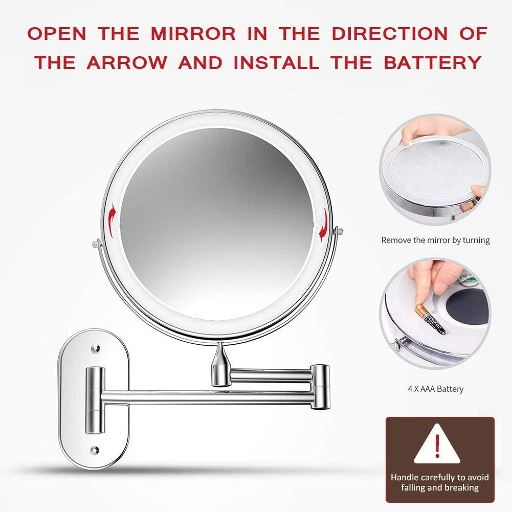 Makeup MirrorsWelcome to Wxliner's shopMirror- specializes in Bathroom Mirror Wall Mounted. You can find more makeup mirror with lights and magnification in my store linzhuc Mirror-. Best Choice for Home and Gift - Express your love to your parents, lover, friends etc. The vanity mirror is ideal to support your every need. The 10x magnification of the make- up mirror reveals more specific details of your skin, it is an ideal companion for your daily make-up. Core Features: ?Double- sided Mirror: 1X/ 10X?Color: Chrome, Nickel, Black, Matte Gold ?Battery: 4 x AAA batteries ( Not included) ?Weight: 0. 9kg?Size: 26cmX24cmX3. 5cm( L× W× H) ? 30min Auto-off: 30 Minutes intelligent automatic power off ? Adjustable Light Design: Long press to Adjust the Brightness(1%-100%) ? Color Temp: 6500K?360° Rotation: Can be fixed at any angle you want ? Extendable Arm: It can be folded against the wall when not in use to save space ? Ideal for applying:make-up, shaving, contact lenses, hair removal, the elderly ? Suitable Place: luxury hotels, spas and homePackage Includes: ? 1 x Illuminated Makeup Mirror? 1 x Pack of Fixing Screws ? 1 x User Manual FOR BETTER USEPlease use the 10x mirror within a distance of 4" (10cm) to avoid distortionAfter Service: Please feel free to contact us if there are any concern on our round mirror. Usually we will reply to you within 24 hours.If you have any questions, please tell the seller.
