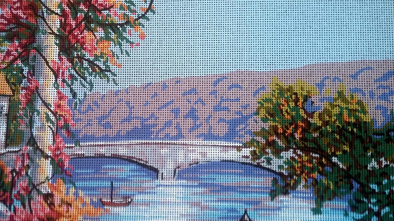 Gobelin L Printed Tapestry Canvas - River view. You are looking at a full colour printed canvas only, from Gobelin L. This will need to be stitched using a good quality Tapestry Floss, a full recipe of required shades and quantities is printed on the canvas for both Anchor and DMC Flosses. The design is full colour printed on Zweigart 10 count double thread Antique canvas (4 threads/cm), and should be worked using half cross stitch with tapestry yarn. Gobelin L (Diamant) is one of Europe's oldest brands of printed Tapestry Canvases and their designs are both scenic and cultural. They also have many designs of classic art paintings. These canvases have been produced using the traditional screen printing process, with multiple passes, to create a design which is like 'Art on Canvas'. The item will be shipped banded to fit an envelope. Thank you for looking. Made in EU(Greece) on 100% cotton penelope canvas. Size 24"x50" 60x125cm The colour guide chart for Anchor and DMC are printed on the sides of canvas. Embroidery threads/yarn are not included.