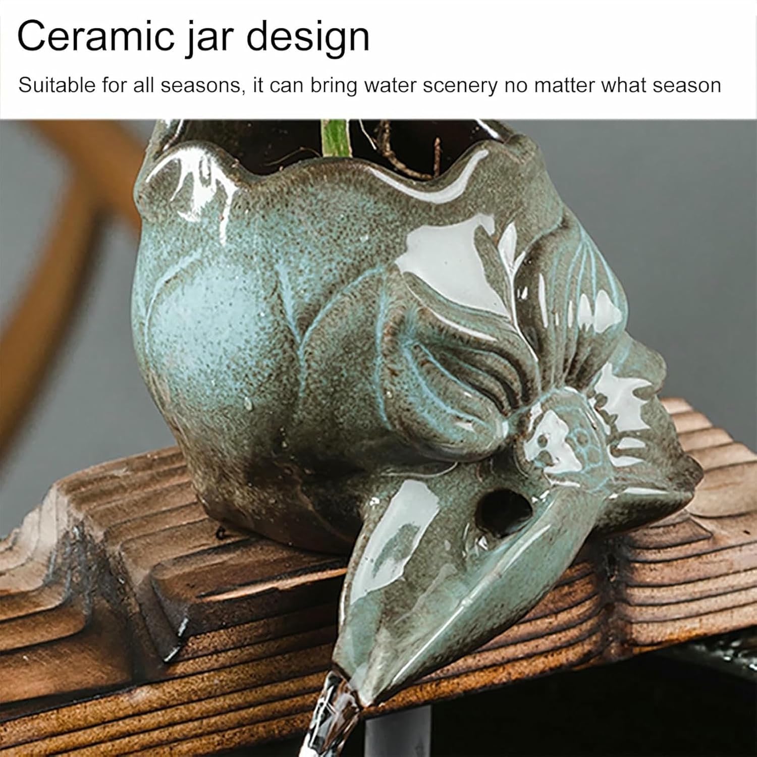 **——This Chinese ceramic circulating fountain outlet is a decoration that combines traditional Chinese aesthetics with modern craftsmanship. It is suitable for a variety of environments such as courtyards, balconies, and indoors. It not only adds a natural beauty and tranquil atmosphere to your space, but also brings a soothing and relaxing effect through the sound of water flow——Designed with traditional Chinese lotus elements, it not only reflects the charm of oriental culture, but also shows the beauty of natural harmony.——Ceramic materials are selected, and after fine hand-making and firing, the surface is smooth, delicate and colorful.——It has good durability and can resist certain wind and rain erosion, suitable for outdoor use——Lifelike details and creative shapes add unique charm to any space——Create dynamic and beautiful waterscapes that are eye-catching——Small and compact, easy to store, and does not take up spaceParameters:- Color: turquoise- Material: ceramic- Size: 9*9*7.5cm/3.5*3.5*2.9in- Packing list: 1 ceramic jarApplicable scenarios: Very suitable for placing in the living room, study, kitchen and garden, enhancing the charm and fun of your living space