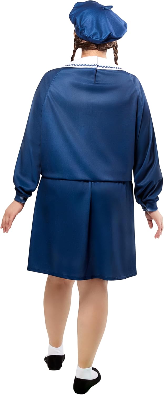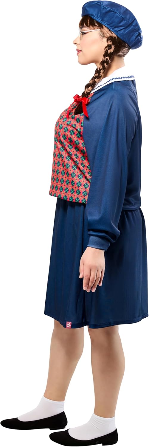 · Step into the spirited world of American Girl with the Women's American Girl Molly McIntire Dress with Beret Costume Set! Inspired by the adventurous character from the original historic dolls released in 1986, this ensemble captures Molly's patriotic flair and creative spirit. From fun fashions to heartfelt stories, Molly embodies the resilience and creativity of American girls everywhere. With a patriotic top, blue skirt, big round glasses, blue beret, and red hair bows, this costume set brings Molly's iconic look to life. Add the Molly McIntire wig for extra authenticity and gather your friends for a historic-themed adventure with costumes inspired by classic dolls like Kirsten Larson and Samantha Parkington. This ensemble is perfect for Halloween parties or themed events. Simply hand wash with cold water and mild detergent for easy care. Embrace the magic of childhood and let your imagination soar with the Women's American Girl Molly McIntire Dress with Beret Costume Set!