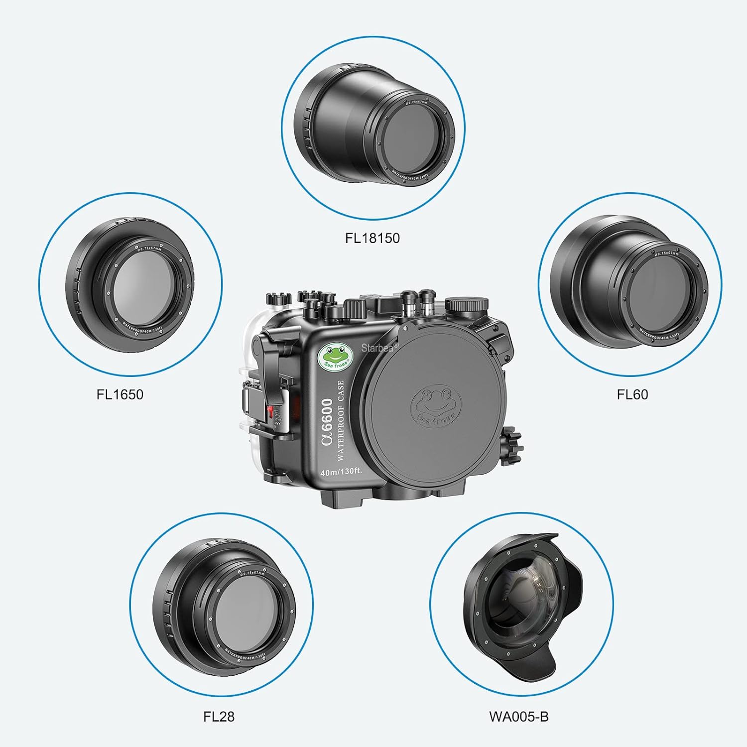 40m/130ft Waterproof Underwater Housing Camera Dive Case for Sony A6600 10-18MM Waterproof CaseFriendly Reminder: Please read the manual before operating the camera housing.Product Name: Camera Waterproof Housing for Sony A6600 10-18MMBrand Name: Sea frogsModel Number: Sony A6600 10-18MMCompatible Action Camera Brand: SonyOrigin: ChinaMaterial: PC, Optical Glass, EPDM Debris, O-RingLevel: IPx8 DivingOperating Temperature: 0-40 Degrees CelsiusShockproof: 1 MeterWaterproof Element: O-Ring SealType: Waterproof HousingMaterial: PCColor: BlackWaterproof Depth: 40 Meters / 130 ftPackage Includes: 1x Waterproof Camera Housing, 1x Neck Strap, 1x Hand Strap, 1x O-Ring Seal, 1x Screen Cover, 1x Dust-free Cloth, 1x User Manual. Camera and silicone grease are not included.