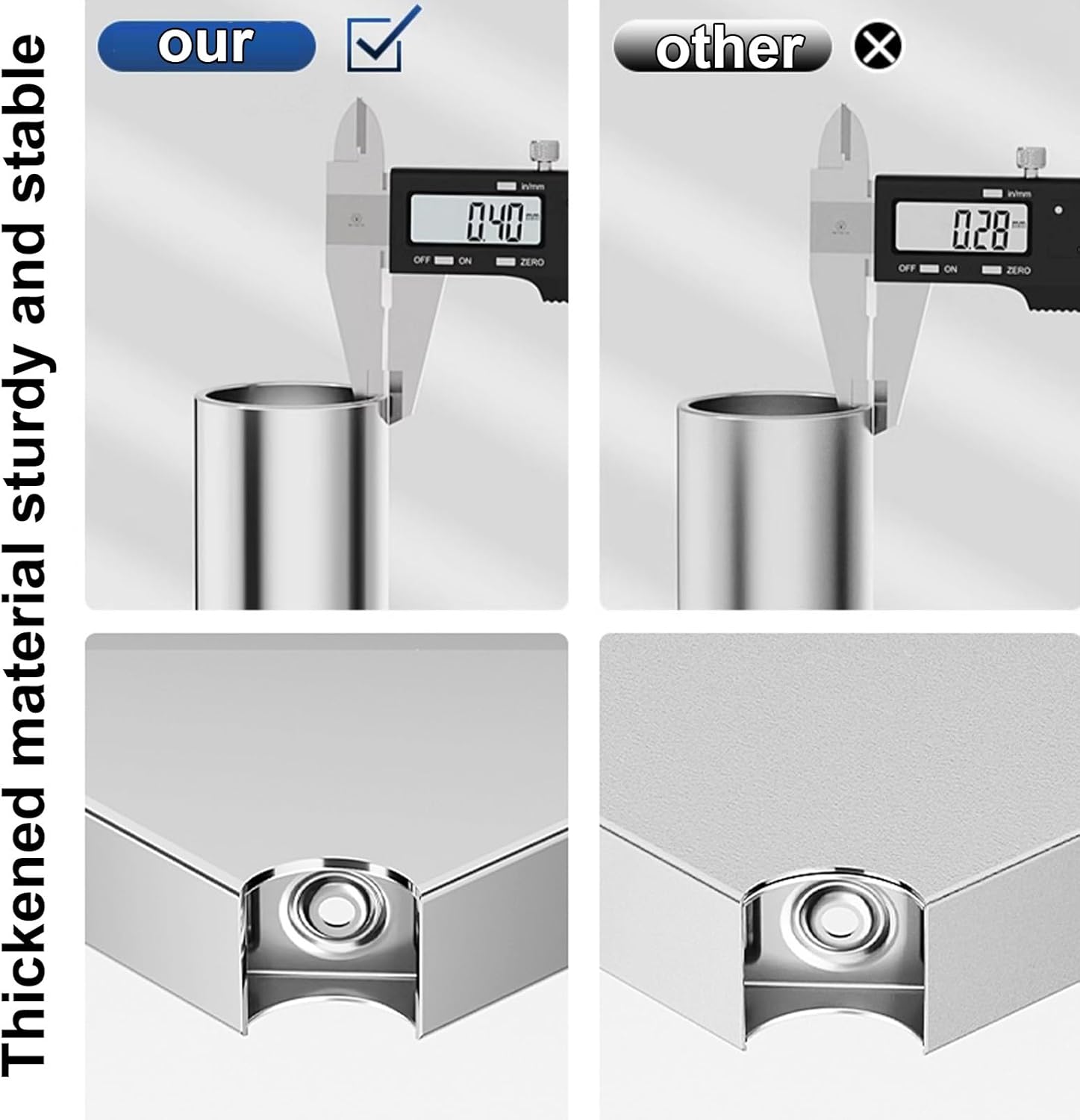 Made of brushed stainless steel, the table is smooth and bright, not rusty, sturdy and stable without shaking, can be use for a long timePanel at the bottom of a number of beams to strengthen the load-bearing not dent, not deformed, with sufficient material more stableProduct Name:Three-deck workbenchMaterial: stainless steelSize:50x40x80centimeters(19.7x15.7x31.5")60x40x80centimeters(23.6x15.7x31.5")70x40x80centimeters(27.6x15.7x31.5")80x40x80centimeters(31.5x15.7x31.5")90x40x80centimeters(35.4x15.7x31.5")100x40x80centimeters(39.4x15.7x31.5")120x40x80centimeters(47.2x15.7x31.5")Product list: workbench x 1 (other items not included)Note Tip:Please note that there may be a little color difference due to the different screen displaysManual measurement, there may be 1-3centimeters error, please understand
