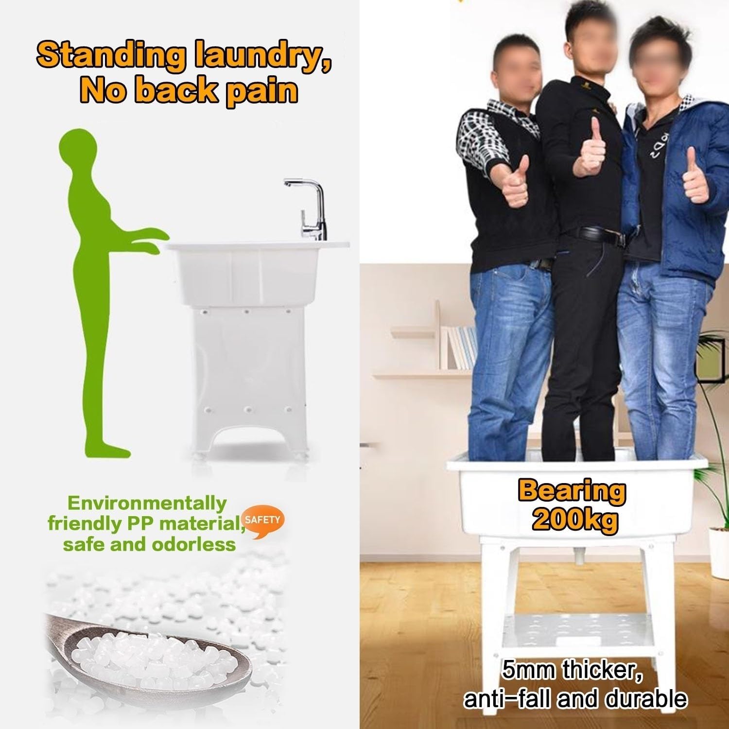 DescriptionThis multifunctional laundry sink is made of high-quality PP material with strong bearing capacity and stability. Its non-punching design and hand-tightening screw installation parts can make installation easier. The classic white appearance and simple lines can adapt to any home decor style and add a simple and elegant style to your bathroom.1: Freestanding laundry utility sink multipurpose sink with washboard portable wash station sink sink mop poolcomes with a complete drain kit and hot and cold water faucet for bathrooms, balconies, basements, garages, sinks, mud rooms, bringing practicality and convenience to your various household chores.2: Thickened PP material, high quality, can be used for a long time. provide enough space to clean all bulky and oversized items, the bathtub is sturdy and stable and can carry a weight of 200kg, Reasonable height of 80cm to avoid discomfort caused by bending over to wash clothes, the double-layered shelf design at the bottom of the washbasin provides storage space for washing utensils.3: More than just laundry use as a pet bathing pool to bathe your pets, use as an outdoor kitchen sink to clean dirty pots and grills, use as a temporary sink, ideal for renovations, use as a portable sink in a garage or basement.Thank you very much for coming and wish you a happy shopping.